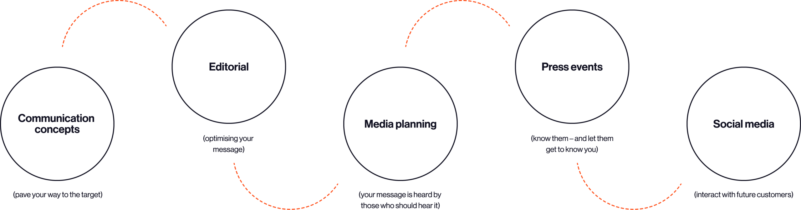 We help you tell the story that only you can tell: your own. We accompany you on the path to an inspiring narrative. We develop your messages, design your communication measures for successful PR and public relations, draw up recommendations and sharpen your profile – always in close and trusting contact with our clients and the key players in the industry. You benefit from our experience and our commitment to continuous development in a constantly changing professional environment.